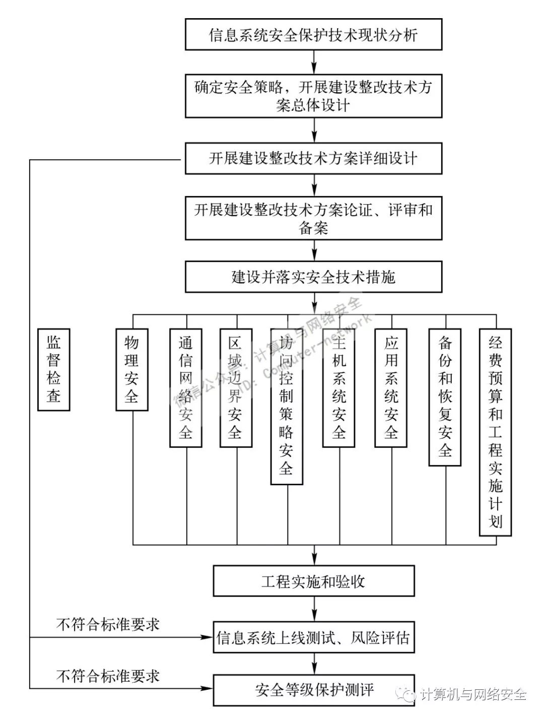第四步:開展信息系統(tǒng)安全建設(shè)整改工作,建立并落實(shí)安全管理制度,落實(shí)安全責(zé)任制,建設(shè)安全設(shè)施,落實(shí)安全措施;在實(shí)施安全建設(shè)整改過程中,需要加強(qiáng)投資風(fēng)險(xiǎn)控制、實(shí)施流程管理、進(jìn)度規(guī)劃控制、工程質(zhì)量控制和信息保密管理。